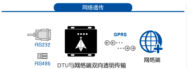 支持網(wǎng)絡(luò)透?jìng)鳌赐该鱾鬏敚?G DTU接收什么就發(fā)送什么,快速連接串口設(shè)備和網(wǎng)絡(luò)服務(wù)器,將串口數(shù)據(jù)快速轉(zhuǎn)成4G傳輸。